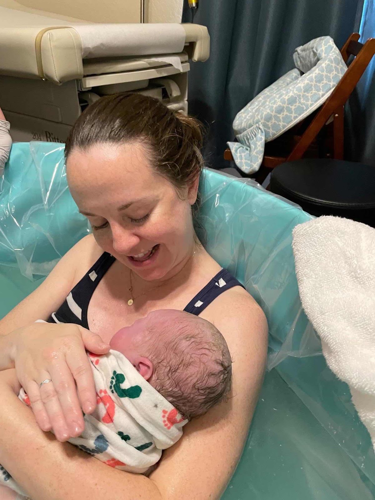 I heard someone say “it’s a boy!” And I looked down and he was floating in the water with his eyes open.